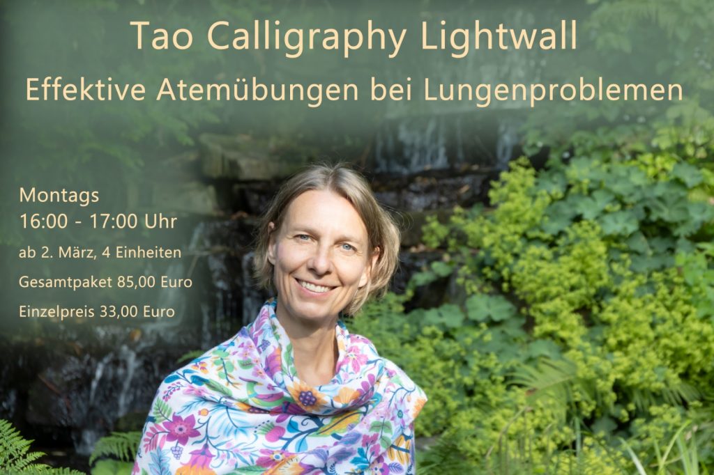 Mit einer einzigartigen Kombination aus gezielten, effektiven Atemtechniken und der unterstützenden Wirkung der Tao Kalligraphy Lightwall öffnen wir neue Wege zu einem freieren, tieferen Atem